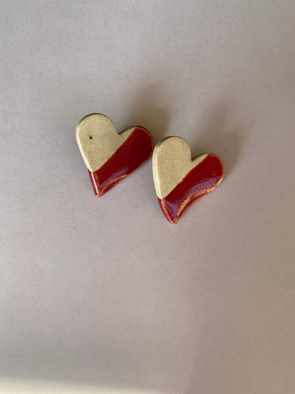 Brinco Pino Cerâmica Coração Creme Pintura Vermelho