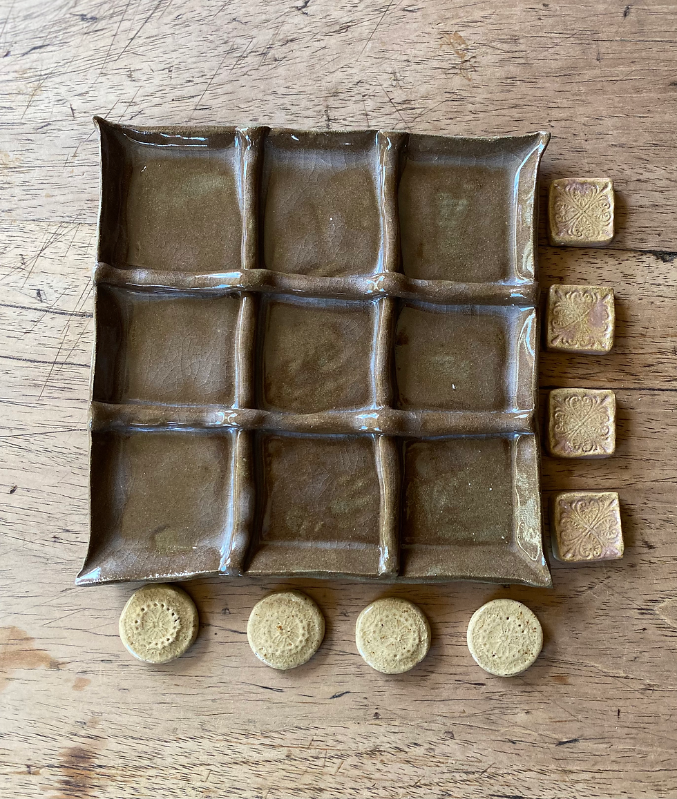 Jogo da Velha Peças em Cerâmica Disco Creme Quadrado Telha